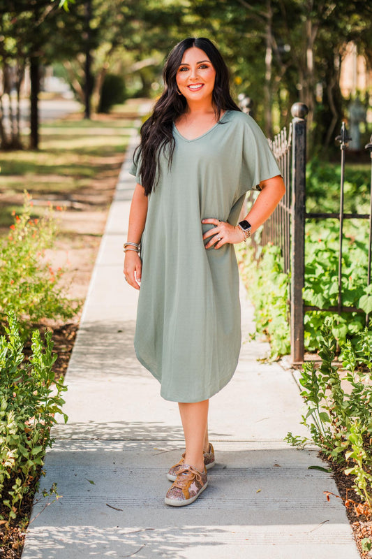 Sage V-Neck T-Shirt Dress
